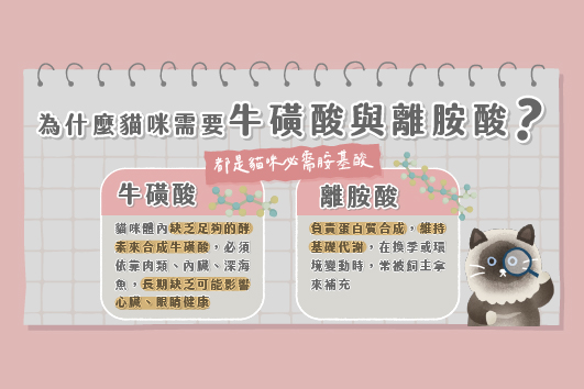 貓咪牛磺酸與離胺酸:毛孩日常不可或缺的營養關鍵 養貓的你應該常常在飼料或保健品的成分表上看到「牛磺酸」與「離胺酸」。這兩個名字聽起來很科學,其實跟貓咪的日常健 閱讀更多 » 2025 年 9 月 12 日