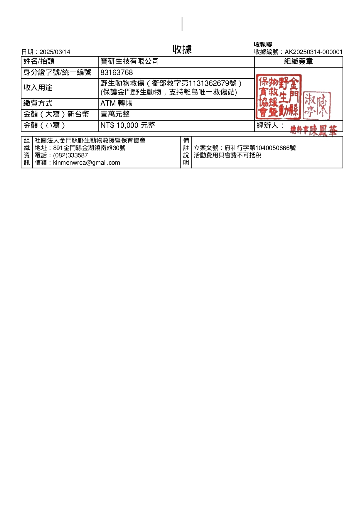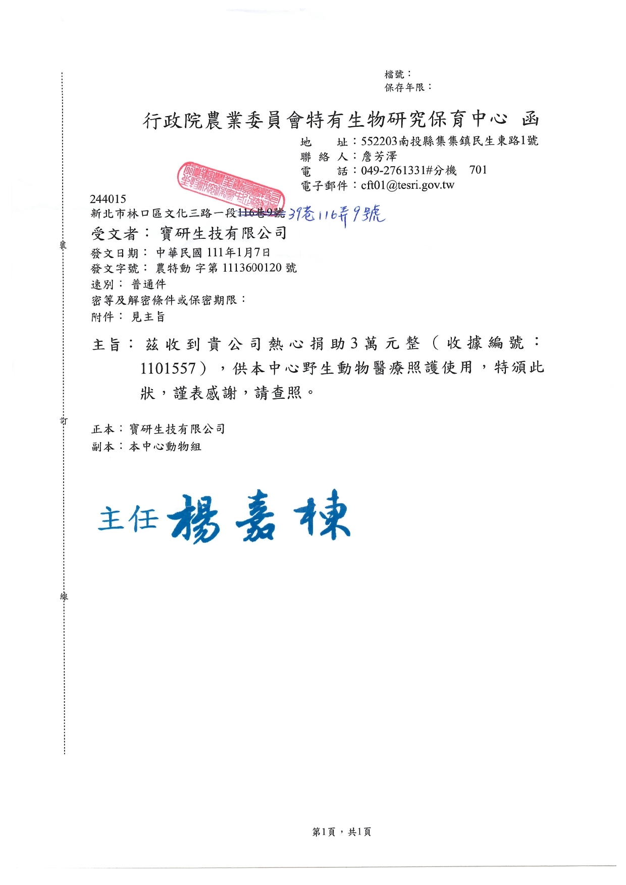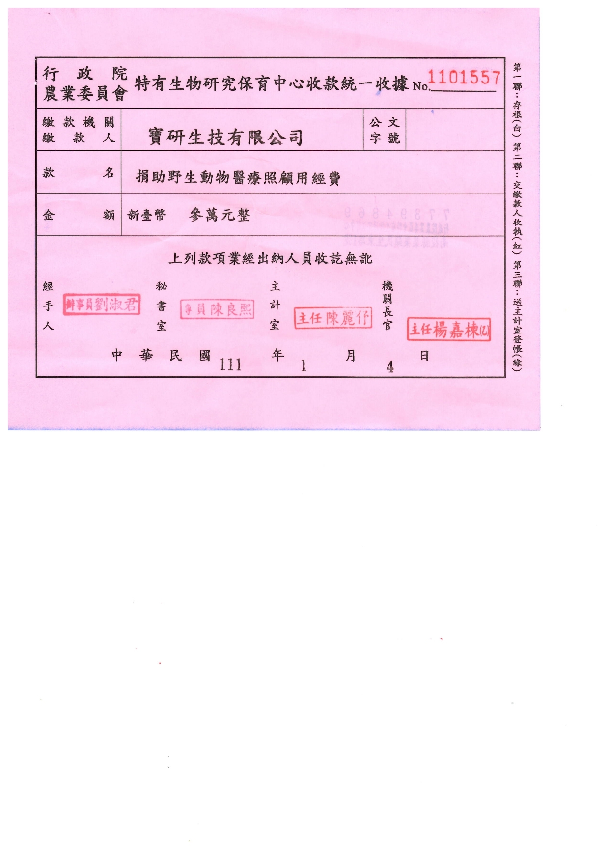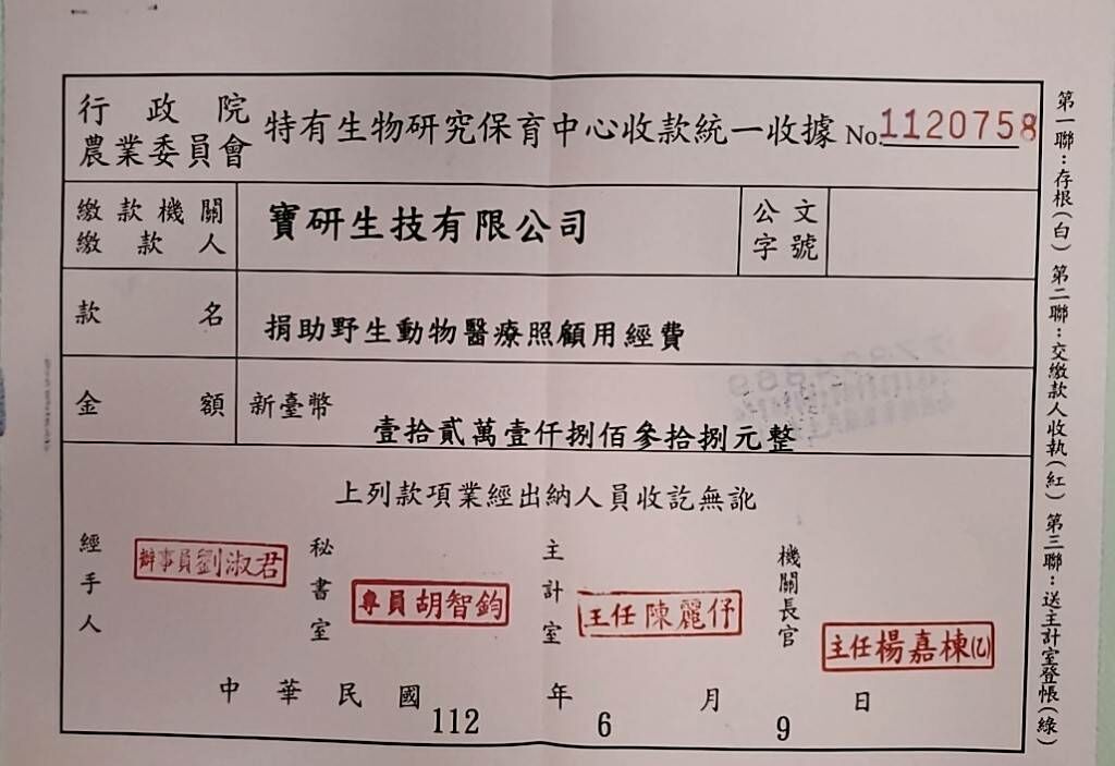 2022-2023南投特有生物研究保育中心野生動物急救站捐款明細