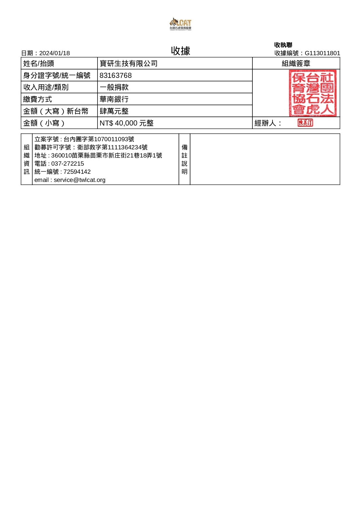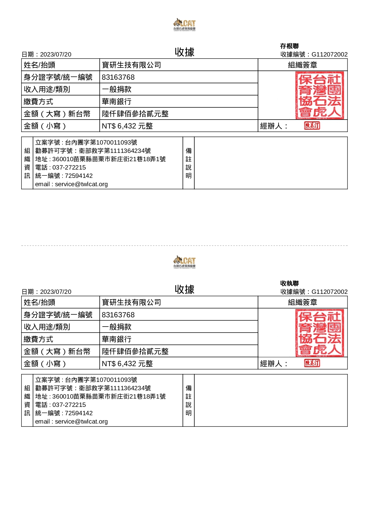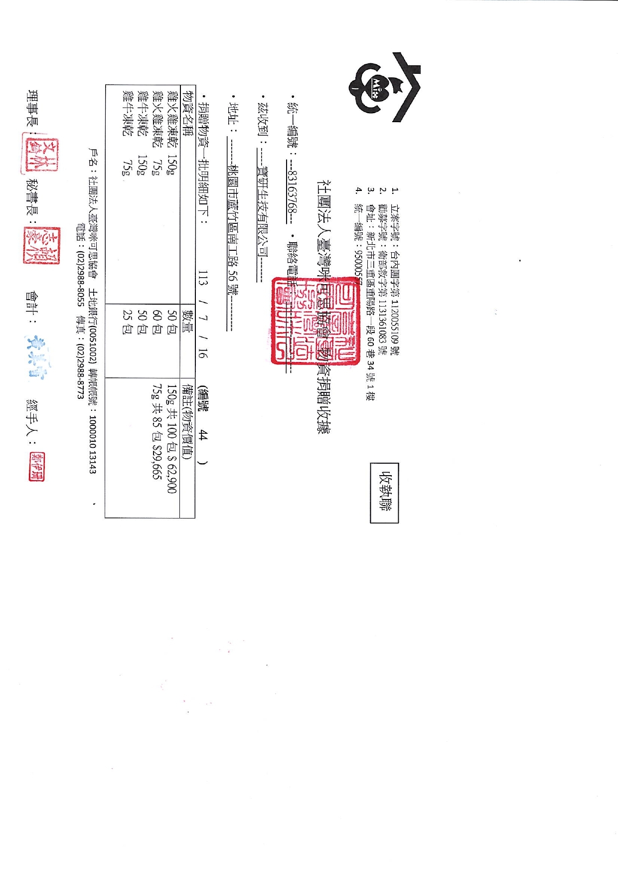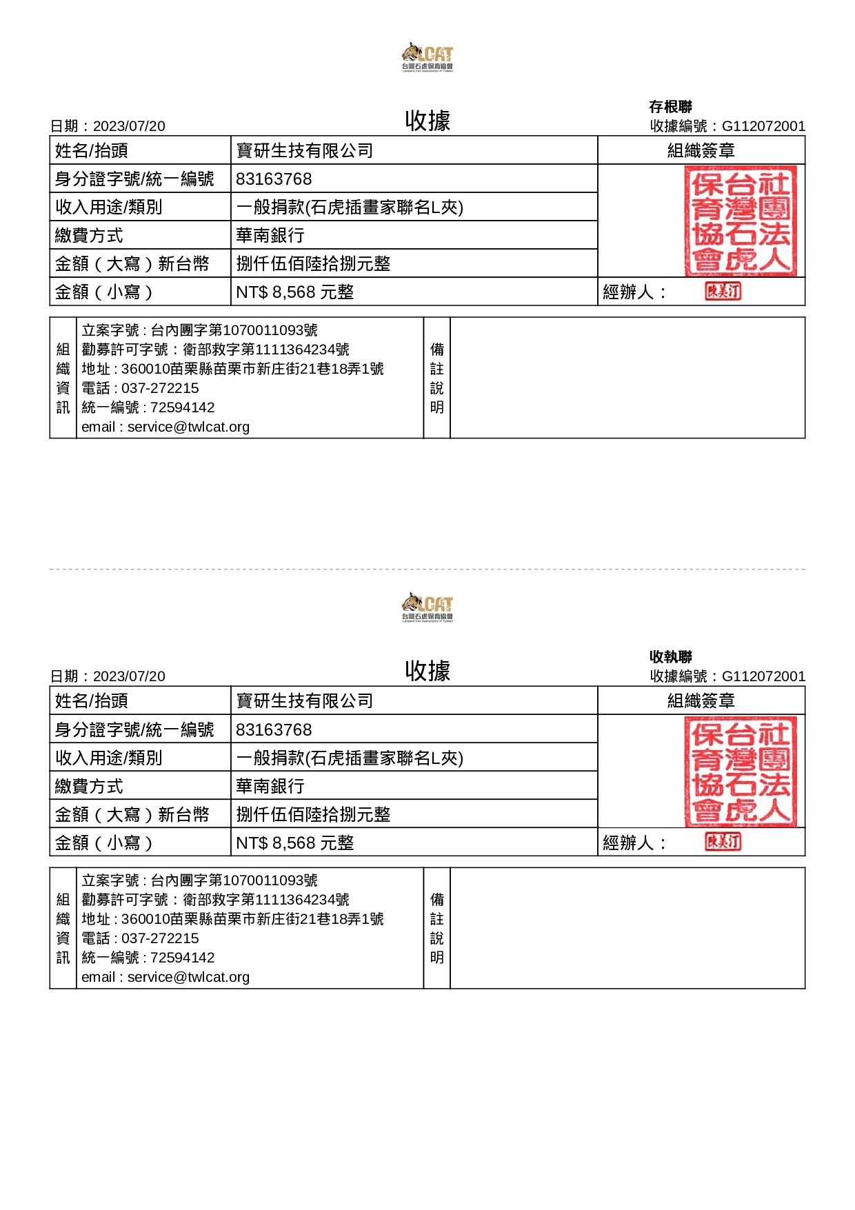 2022-2023南投特有生物研究保育中心野生動物急救站捐款明細