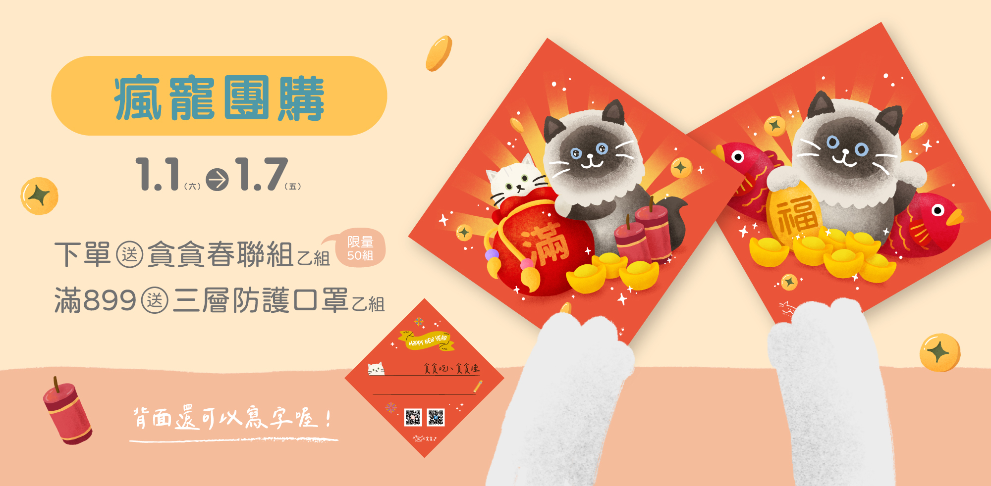<買就送>凡消費就送市值$139貪貪春聯組(2入),結帳頁中輸入折扣碼:crazypetter,限量50組