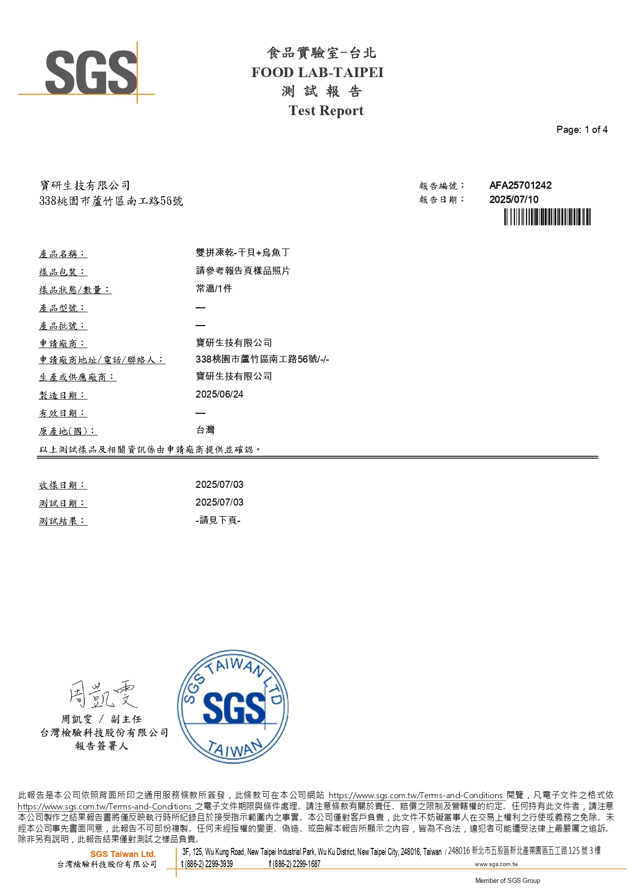 貪貪一食貪吃FUN桑凍乾SGS檢驗報告