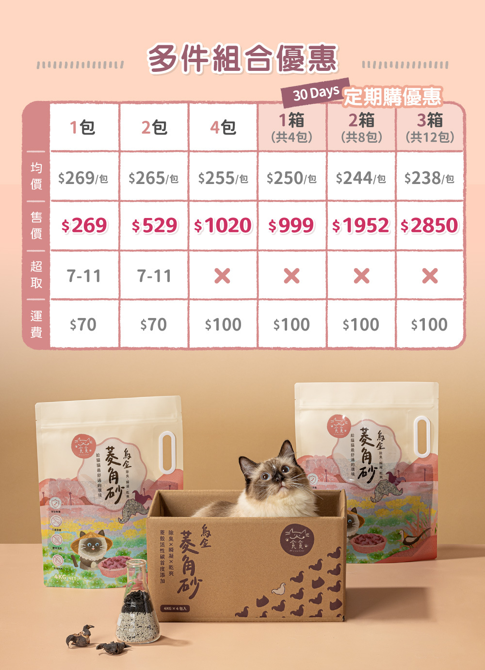 ※貓砂一箱為 獨立配送 商品,將與一般商品分開包裝出貨,可能於不同時段配達