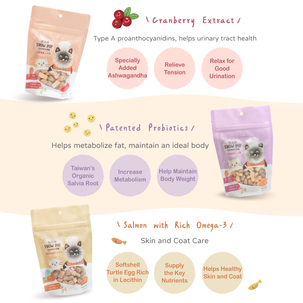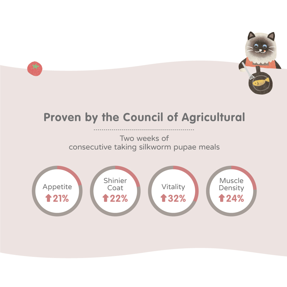 Snow Pop, the first eco-friendly cat food in Taiwan, works with the Council of Agricultural to develop Silkworm Pupae [antibacterial peptides], beneficial to gastrointestinal health. Love your cat love the environment.